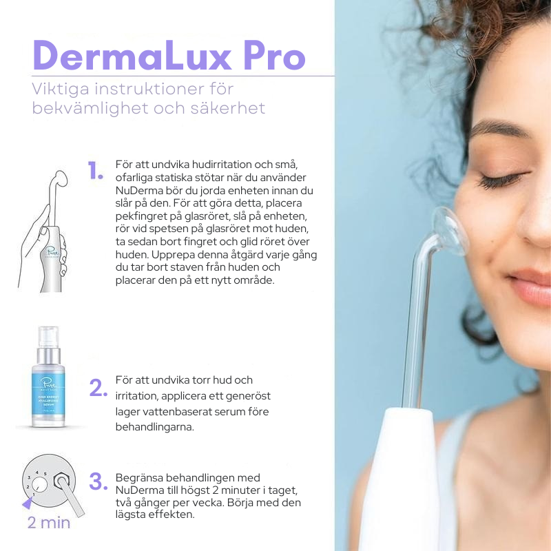 Använd högfrekvensteknik för att föryngra din hud hemma. DermaLux Pro ökar cirkulationen, lugnar hudproblem och förbättrar absorptionen av hudvårdsprodukter, synliga resultat på bara några minuter per behandling.