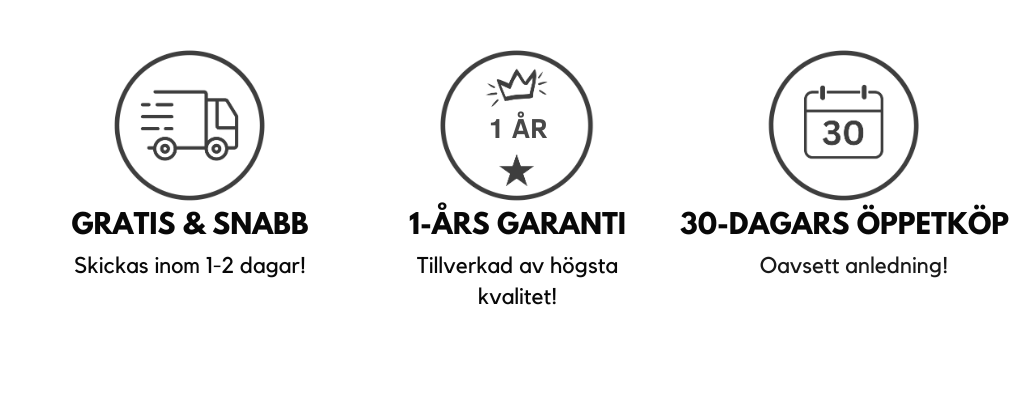 Vi står bakom kvaliteten på våra produkter. Om du inte är helt nöjd eller stöter på några problem, vänligen kontakta oss. Vi är måna om att ge dig en utmärkt köpupplevelse och kommer att ta itu med eventuella problem omgående.
