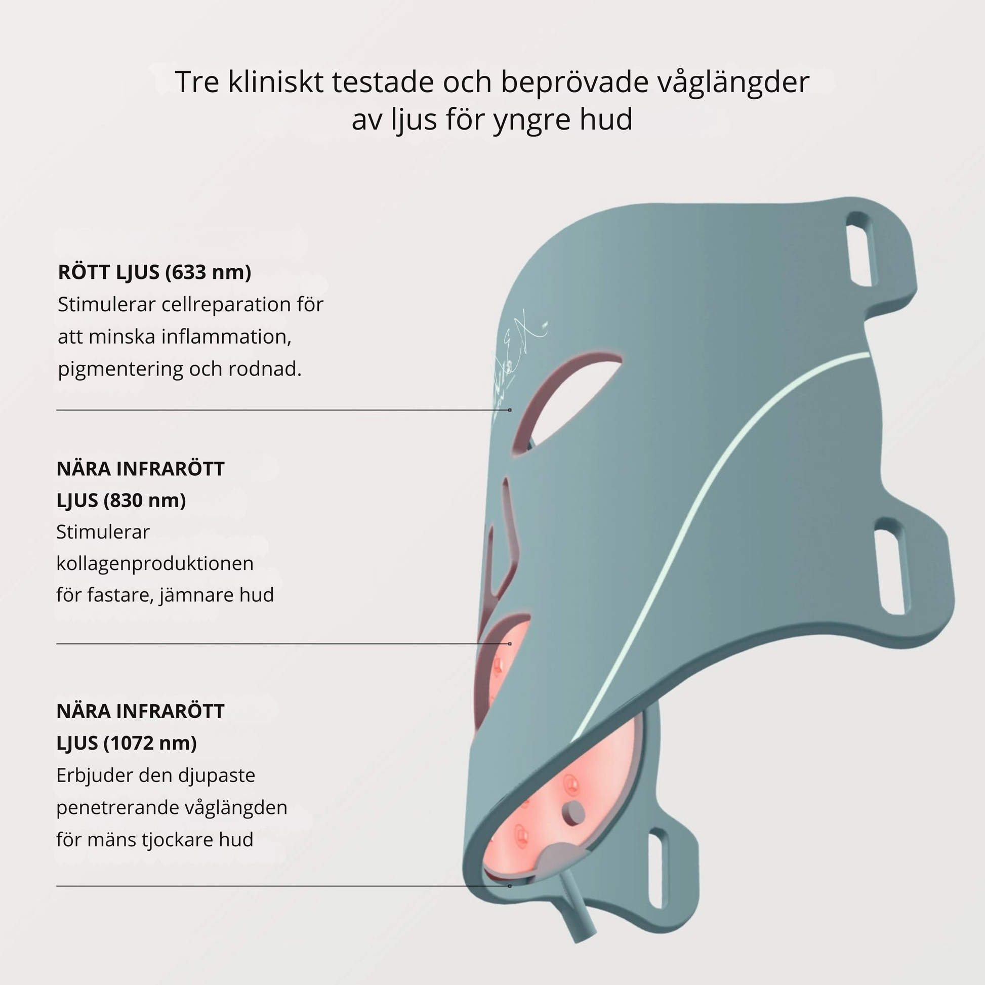 Den optimerade våglängden på 1072 nm av nära-infrarött ljus är en längre ljusstråle som når ditt djupaste hudlager och ger den mest effektiva LED-behandlingen för män.