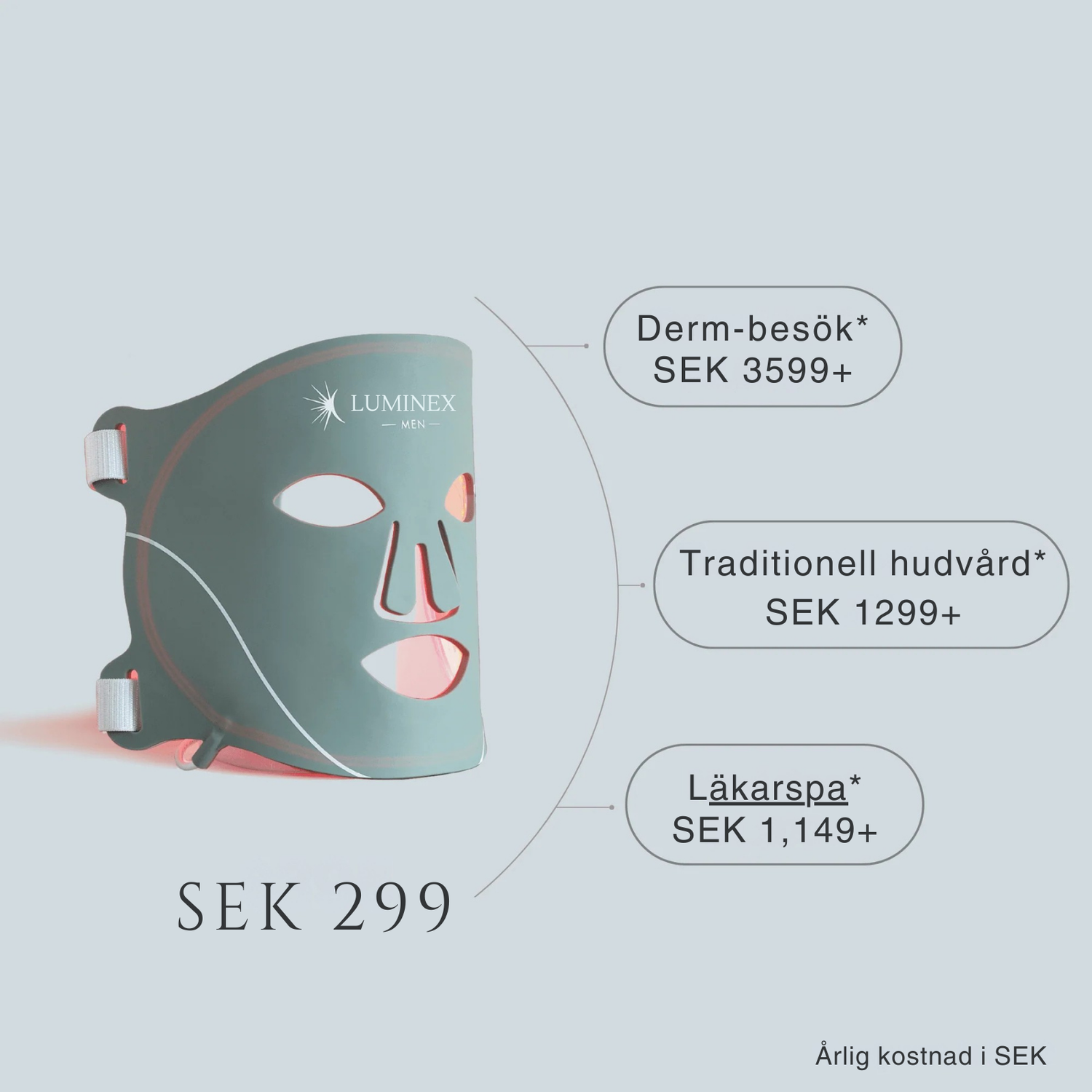 För samma pris som 2-3 ljusbehandlingar på en klinik kan du ha din egen Luminex-enhet av professionell kvalité, behandla din hud på bara 10 minuter, var och när du vill!