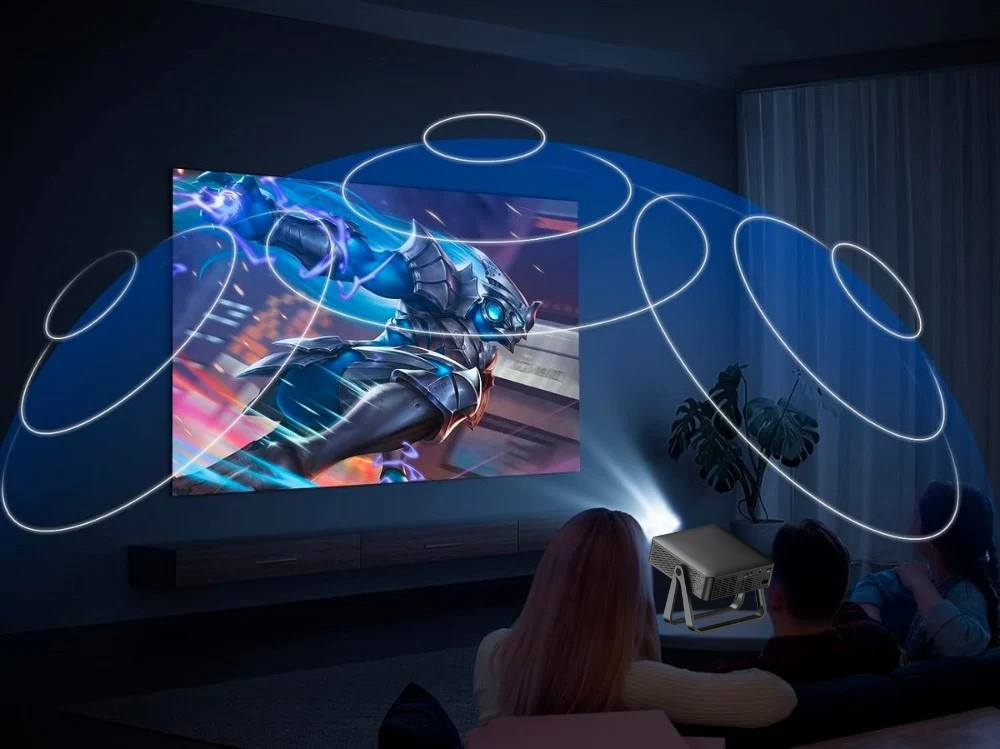 Halo One™ erbjuder en revolutionerande 180° vridbar projektion för en uppslukande bioupplevelse i alla miljöer. Förvandla väggar, tak eller vilken vinkel som helst till din skärm för filmkvällar, utomhusvisningar eller presentationer med oöverträffad lätthet.