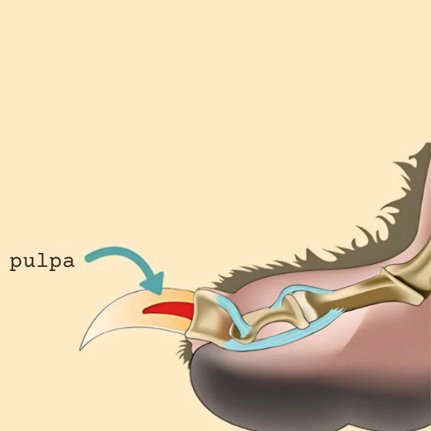 När du slipar klor som är genomskinliga eller ljusa kan du oftast se det rosa området som kallas pulpan, och som du ska undvika. Använd PawTrim Pro™ för att försiktigt slipa endast den genomskinliga delen av klon.