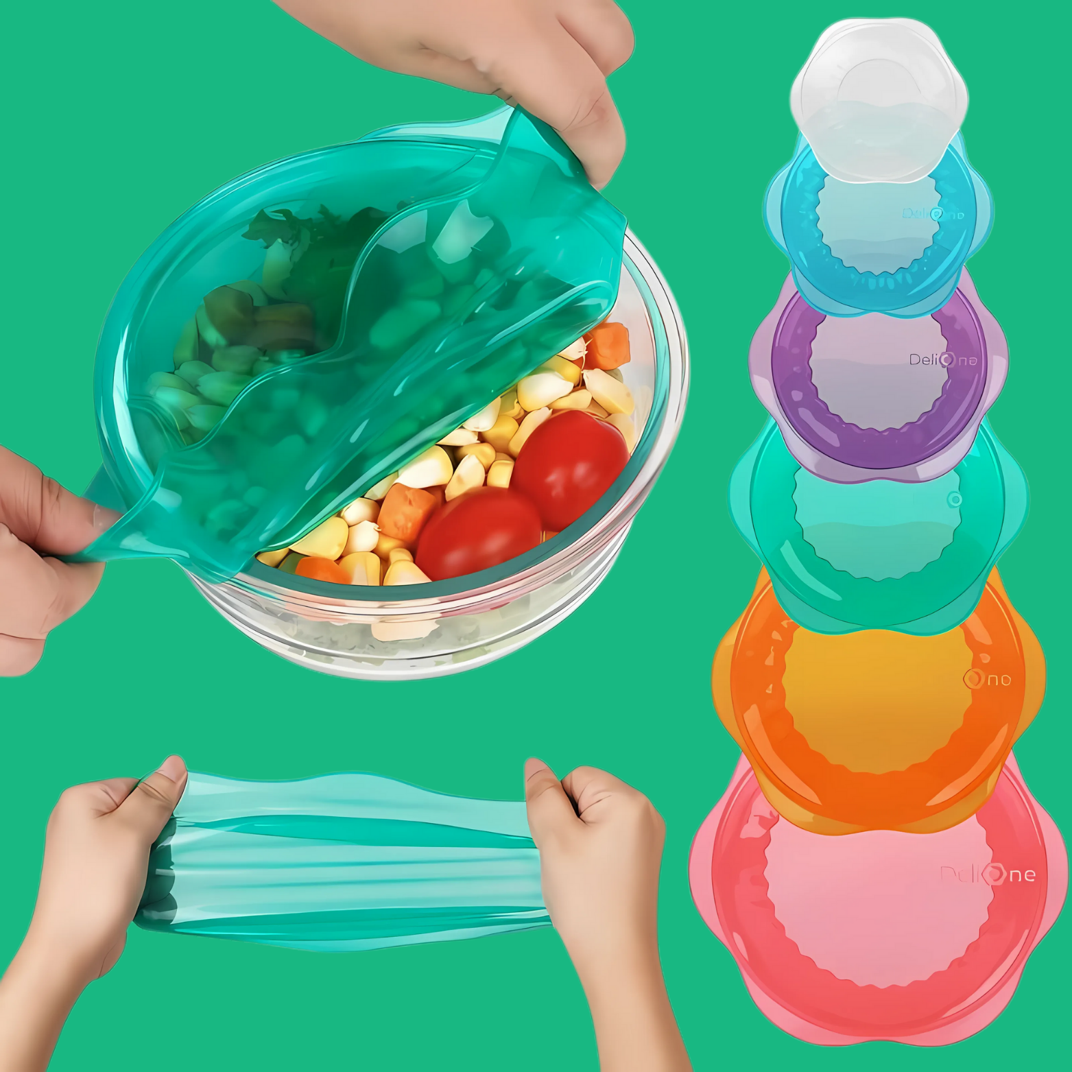 Varje set innehåller 6 stycken lock i olika färger i storlekar från 6 till 20 cm. De kan sträckas ut för att passa koppar, muggar, tallrikar, skålar, burkar, konservburkar och mycket mer.