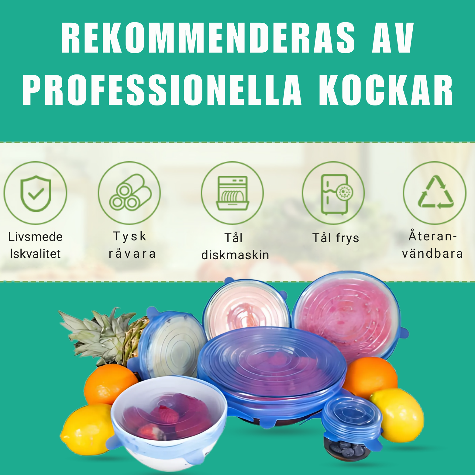 Gör som tusentals nöjda hemmakockar som har bytt till FreshLock™ för färskare mat, mindre svinn och ett renare kök. Från att försluta skuren frukt till att täcka en stor gryta med soppa, har dessa stretchlock fått fantastiska recensioner för sin hållbarhet, mångsidighet och miljövänliga design.