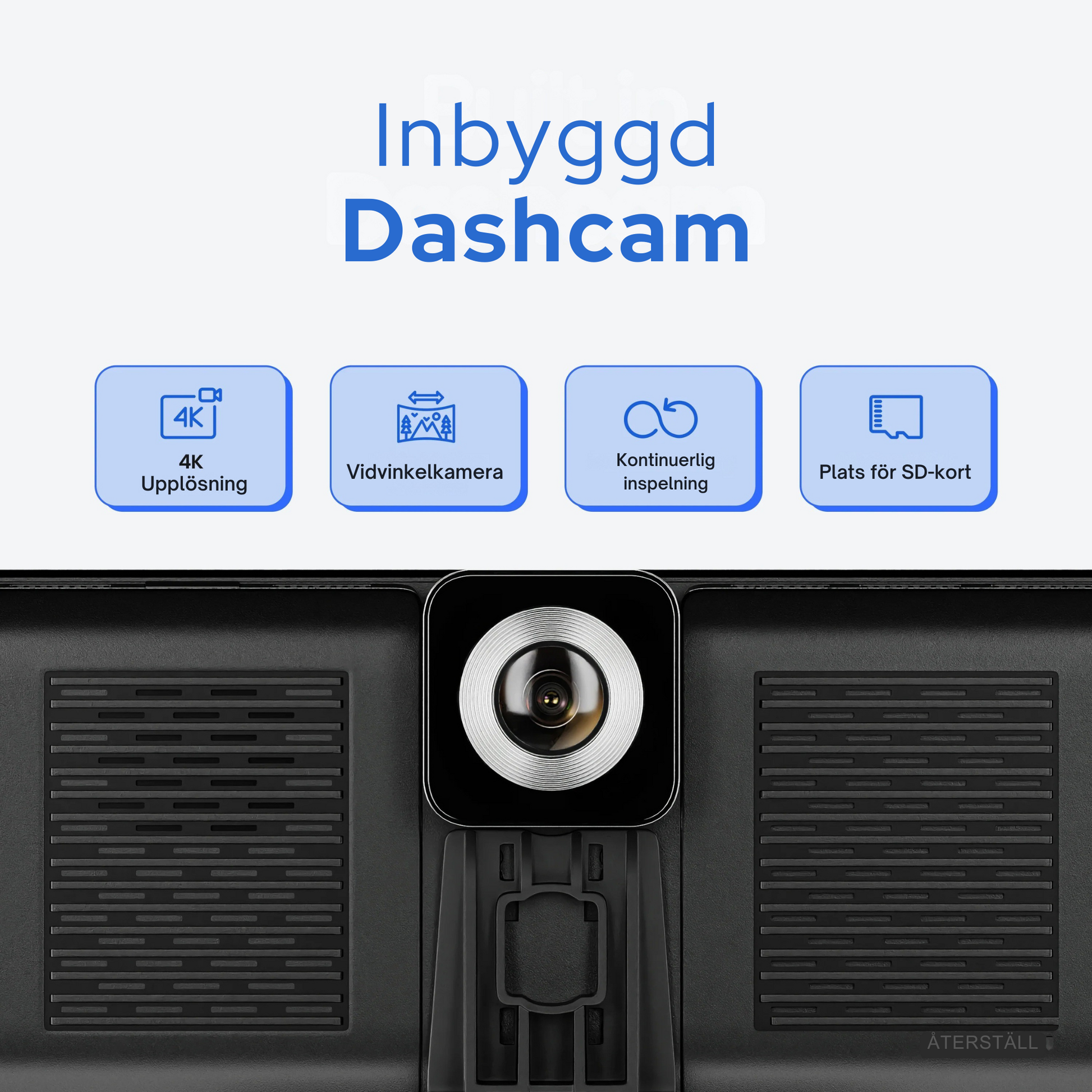 Den inbyggda dashcam-kameran i SmartDrive Displayen spelar in kontinuerligt i 4K-upplösning och ger täckning dygnet runt under dina resor. Denna funktion ger dig trygghet genom att spela in tydliga bilder av din omgivning, vilket kan vara ovärderligt i händelse av en olycka eller för att granska din körväg. Dashcam-kameran är utformad för att starta inspelningen automatiskt när bilen startas, så att du aldrig missar ett ögonblick.