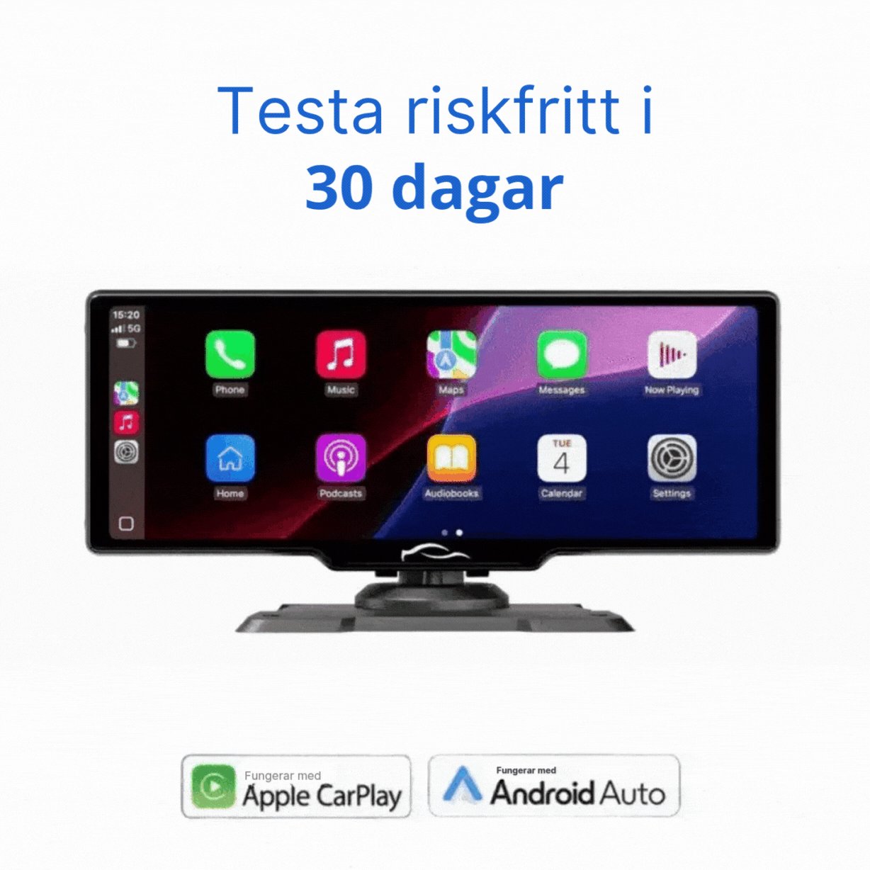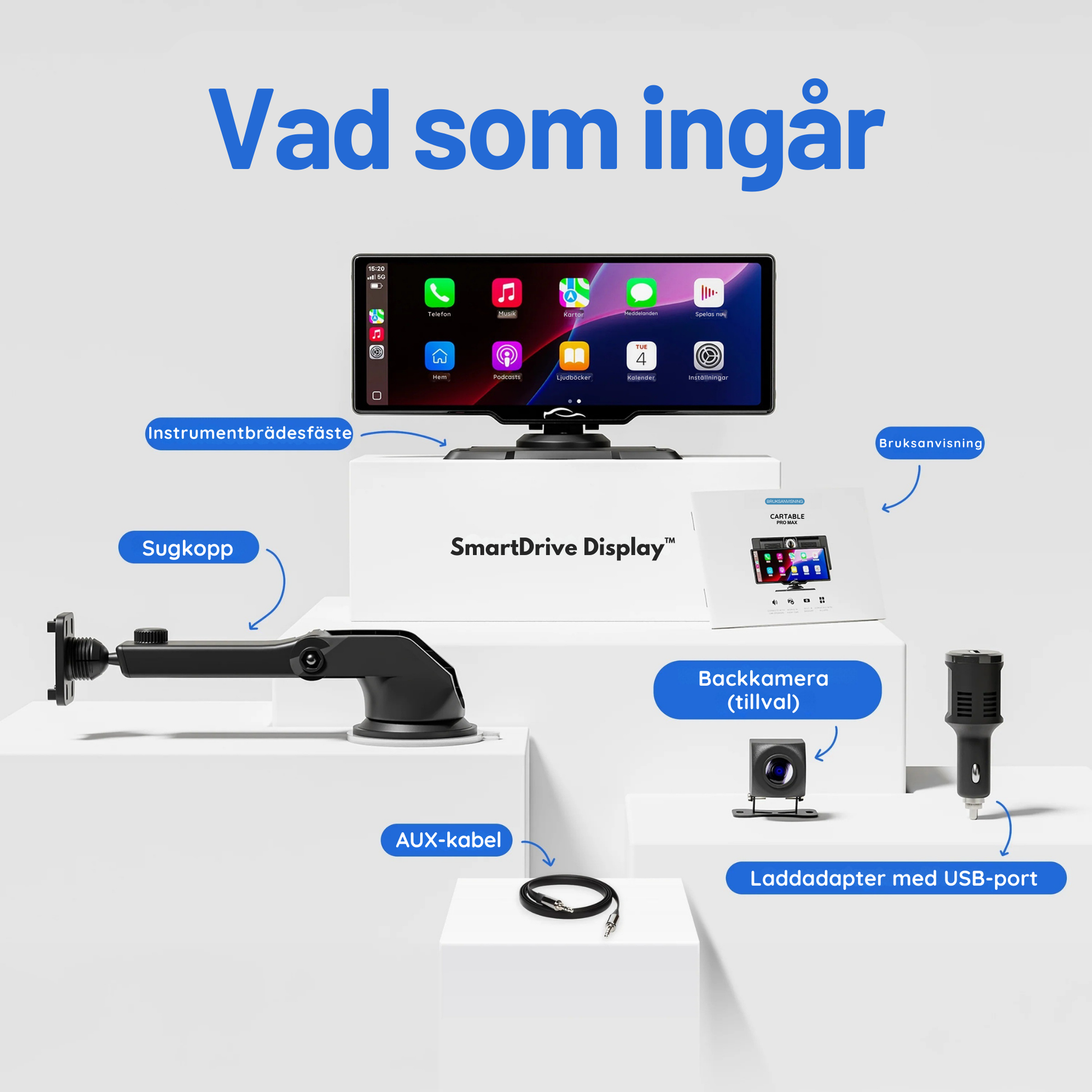 Ja, SmartDrive Displayen stöder både Apple CarPlay och Android Auto, vilket ger din bil modern teknik för smidig navigering, musik och kommunikation.