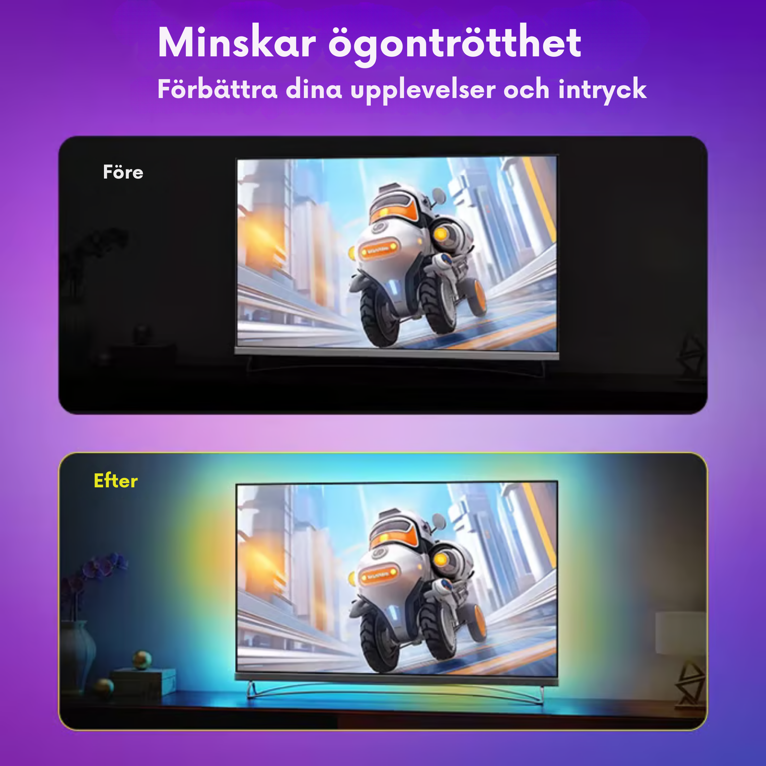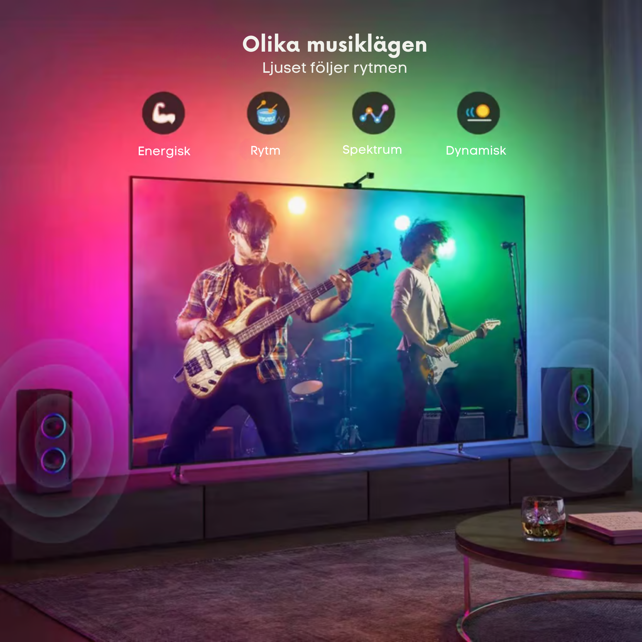 - Flera förinställda scenlägen för LED TV-belysning hjälper till att skapa den atmosfär du vill ha. Med olika lägen blir upplevelsen av spel och tv-tittande aldrig densamma.